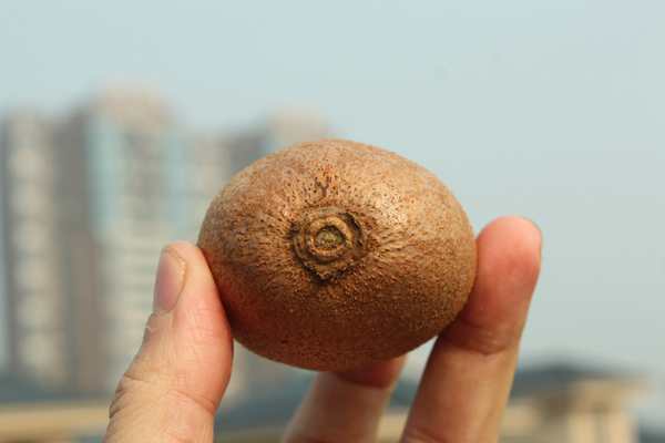 果實(shí)長紡錘形,縱徑6.5厘米,橫徑4.5厘米,平均單果重92克,最大單果重130克,果皮黃褐色,果面生黃褐色,硬毛易脫落,果皮較厚,果肉翠綠色,質(zhì)地細(xì)而汁多,香甜爽口,味濃香,果實(shí)成熟硬度達(dá)19.7kg,果汁含總糖5.5%,酸1.3%,可食時(shí)可溶性固形物含量19%,成熟果實(shí)在室溫下后熟期12-15天,零度條件下貯藏保鮮3-4個(gè)月。